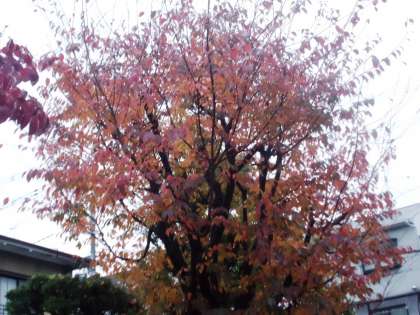 名木100選のソメイヨシノの紅葉も終わりですが,ヤマザクラの紅葉は今が盛りです。ドウダンツツジも美しく染まっています。