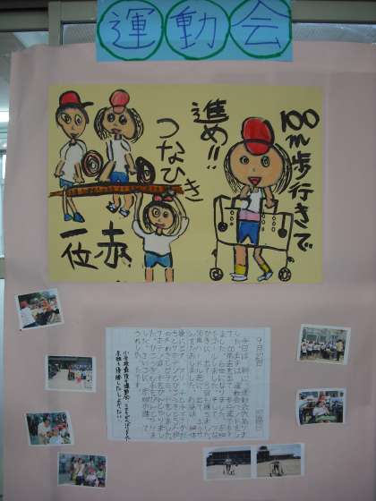 仲よし学級の2人はともに6年生です。小学校最後の運動会を頑張ってやりとげました。頑張った,そして楽しかった「運動会」を絵や文で表わしました。