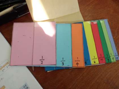 はしたの大きさの表し方に関心をもち,分数で表すことを学習しています。ここでしっかりと単位分数について理解をしておくと,これからの学習に役立ちます。