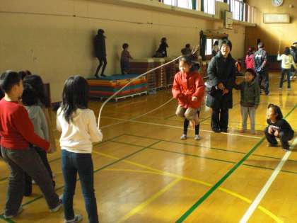 親子で,また,子どもたち同士でダブルダッチを楽しんでいます。