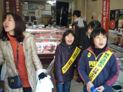 お店紹介をします。お漬物のとり山さん・お肉のかねよしさん・お魚の魚とくさんです。本日,京都新聞社が取材に入っています。