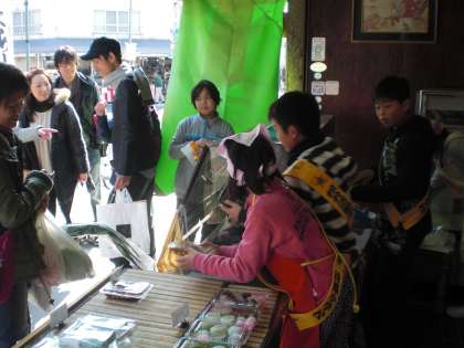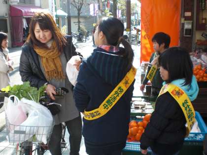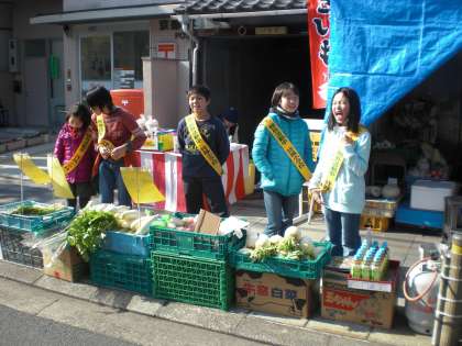 和菓子のお多福さん・果物の森川さん・青果のいなださんです。子どもたちの元気な掛け声が響いています。