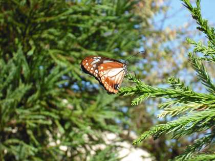 藤袴にアサギマダラがやってきました。アサギマダラは,マダラチョウ科に属する前翅長40〜60mmの可憐なチョウです。春の北上,秋の南下を繰り返す「渡り」をするチョウとしても知られています。羽を広げた写真が撮れなかったのは残念です。