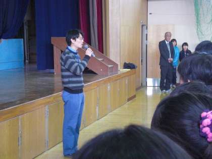 2月の朝会がありました。校長先生から「今の学年も残りわずか。みんなで協力して楽しい学校生活を送りましょう。」というお話がありました。引き続き,橋本先生から仲よし学級のお友だちについて「お互いを認め合い,みんなで励まし合えば,楽しい学校生活を送ることができます。仲よし学級のみんなも頑張ってます。」というお話がありました。