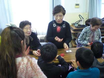 今日のすこやか学級には本校の3年生が参加させてもらいました。メンバーの方々から昔話を伺ったり,お手玉やめんこの仕方を教えてもらったり・・とても楽しいひと時をすごすことができました。ありがとうございました。