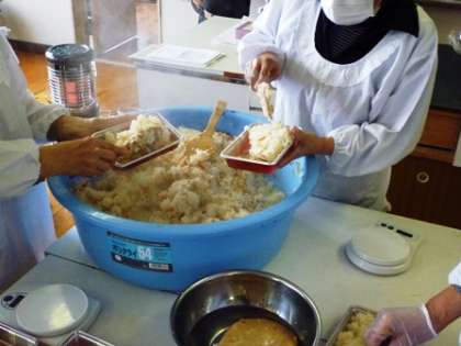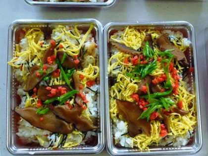 今月は,ちらし寿司を作って配られました。色とりどりの具が入ったおいしそうなちらし寿司です。バレンタインデーも近いことから,チョコレートのデザートも添えられました。