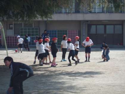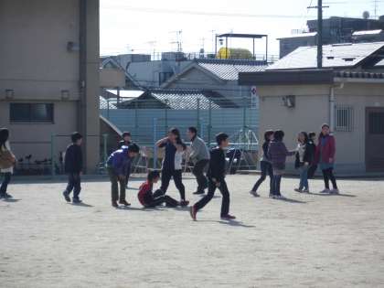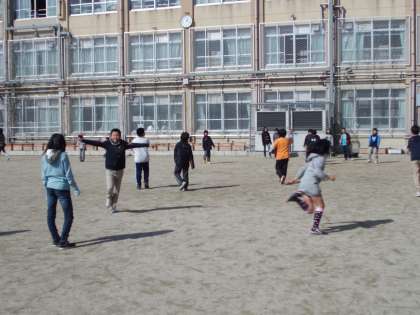午後1時の気温が10度近くまで上がっています。昼休み,運動場では多くの子どもたちが元気に遊んでいます。