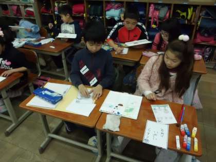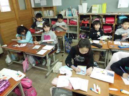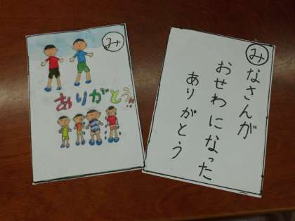 国語の時間に「かるた」を学習し,かるた作りをしますが,その続きで,お世話になった6年生に卒業おめでとうの気持ちを込めてかるたを作っています。