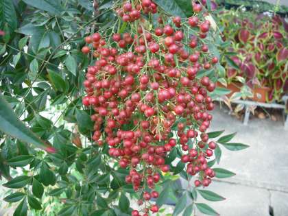 秋本番,南天の実が赤く熟してきました。鳥たちの格好の餌になりそうです。