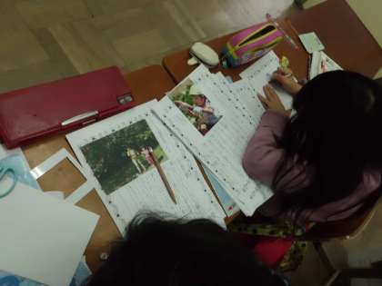 自分の成長の様子を振り返るとともに,分かったことや成長を支えてくれた人々への感謝の気持ちなどを工夫して思いでカードに書いています。