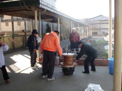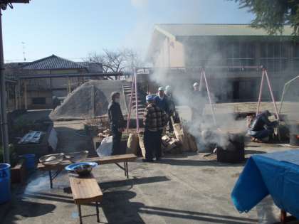 毎年恒例の自治連合会主催の「卒業祝いもちつき大会」の準備を早朝より行っていただいております。ありがとうございます。インフルエンザで学年閉鎖のため,今日に延期となっておりました。皆様,よろしくお願いいたします。