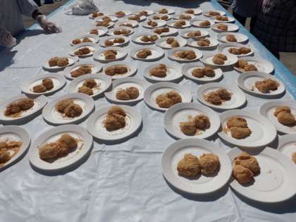 おぜんざいの次は黄粉餅です。つきたてのお餅はおいしいですね。