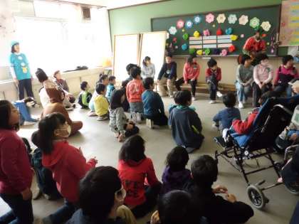 北上支部の育成学級のお友だちが集まって,まもなく卒業する6年生を祝って「合同お別れ会」を開きました。北上支部では9人のお友だちが卒業します。1人1人が中学校に進学して頑張ることを発表しました。また,支部のお友だちからプレゼントを頂きました。