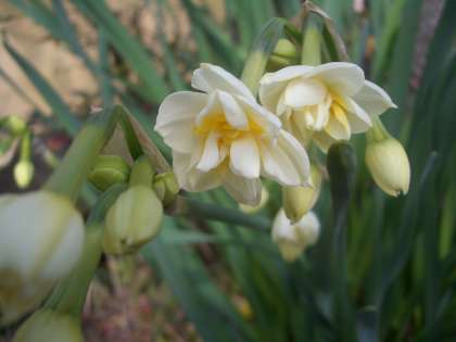 校門を入ったところにある八重の水仙が咲きました。八重と言えば,今は八重の桜が有名ですが…。水仙もなかなかのものです。