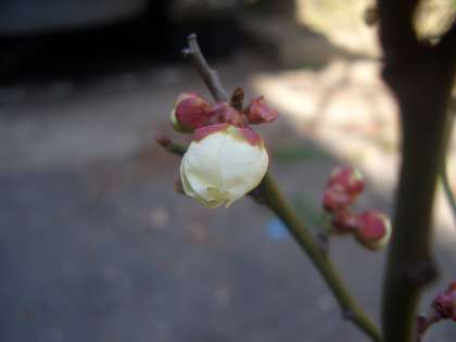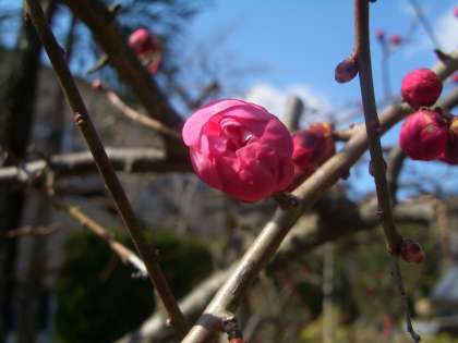 白梅,紅梅が暖かさにつられて,今にも咲きそうになってきました。