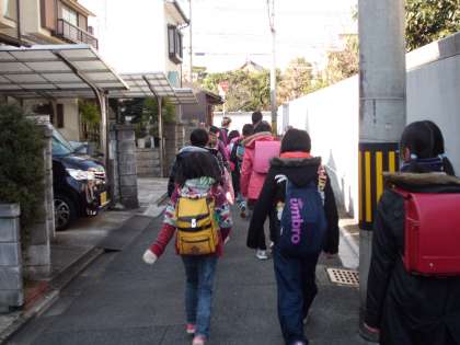 町別児童集会の後,町担当の先生と一緒に集団下校をしました。通学路の安全を確認しながら帰ります。いつも通ってるから大丈夫ではなく,安全に登下校できるように自分たちの行動も考えましょう。