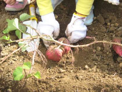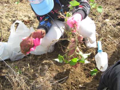 一人二株の割当てで掘りました。大きないもがたくさん掘れました。大小合わせて10個以上も掘った人もいました。