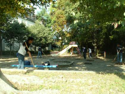 10月18日(日)に「クリーン大作戦」が西野山児童公園で行われました。台風の影響か,落ち葉がたくさんありました。落ち葉はいもほりの後の焼き芋に活用です。1時間ほどの掃除でしたが,見違えるようにきれいになりました。