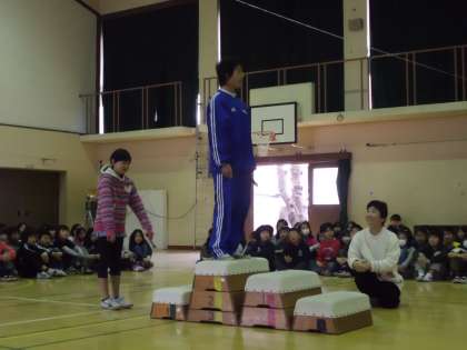 今日は児童会主催の「6年生を送る会」です。6年生が自分の名前と夢を語りながら一人一人入場しました。