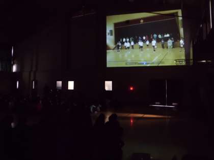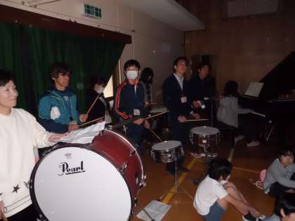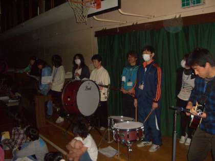 教職員から,「生命の息吹」という曲の合奏をプレゼントしました。体育館の壁をスクリーンにし,6年間の歩みが映し出されました。
