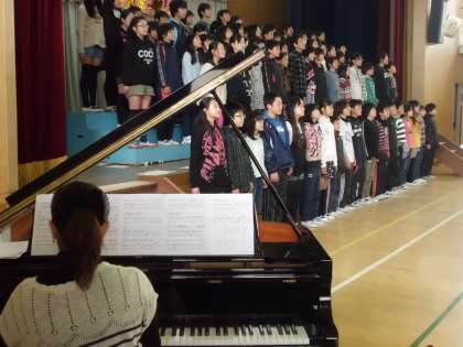 6年生からは心をこめたお礼がありました。リコーダーの合奏「カノン」と「この地球のどこかで」の合唱をしました。とても素敵な6年生です。