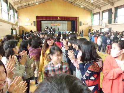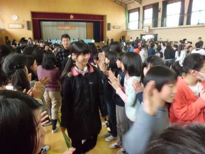 最後は1〜5年生で花道を作り,1年間,いろいろな場面で活躍し,リーダーとして頑張った6年生へのお礼をこめて大きな拍手で送りました。5年生の計画委員の「6年生のみなさん,1年か本当にありがとうございました。」の言葉はみんなの思いがいっぱい詰まっています。多くの保護者の皆さんも参観され,とても感動的な会になりました。
