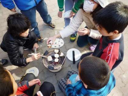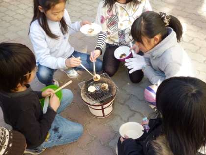 ふっくらといい具合に焼けたおもちをいただきました。お醤油をつけて,とってもおいしくいただきました。お手伝いいただいた地域のみなさん,ありがとうございました。