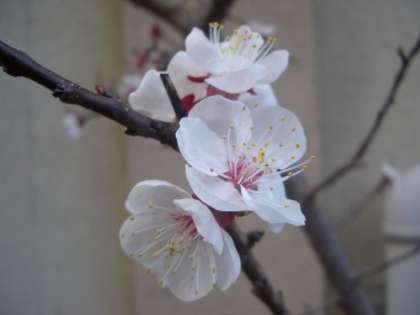 一見桜のように見えますが,実はアンズの花です。バラ科サクラ属の落葉小高木なので,桜に間違えても不思議ではありません。今年は杏(アプリコット)が収穫できるかな。