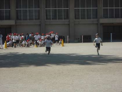 今日は50メートル走の測定です。去年より速くなってるかな?みんな真剣にに走っています。