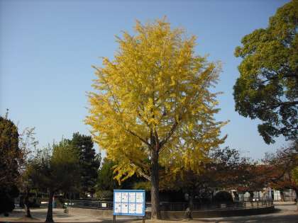 動物園のイチョウの木が黄色く染まっていました。
