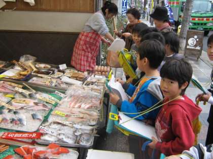 今日は「新大宮商店街」へ出かけて,直接,お店の人にインタビューしました。京都一長い新大宮商店街は,待鳳小学校の校区にあります。どんなお店があるのかは知っていても,詳しくはしりません。社会科で学習したスーパーマーケットと比べてみました。