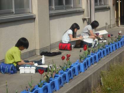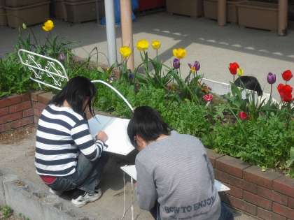 春真っ盛り,花を中心に写生をしました。参観日には教室に掲示できるかな?