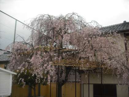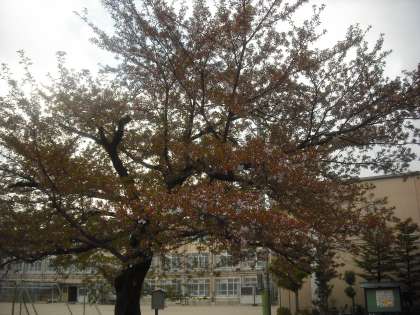 おはようございます。4月15日,午前7時30分の桜の様子です。昨日の雨でソメイヨシノは花びらがほとんど落ちてしまいました。枝垂れ桜はまだまだ頑張っていますが,終りに近づいてきたようです。