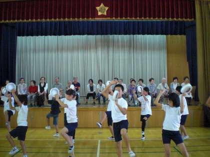 今日のすこやか学級では,6年生が運動会で演じる沖縄民舞「パラダイス」をメンバーのみなさんに見ていただきました。踊りは,まだ完成途上なんですが,できている部分までを披露しました。みなさん,お疲れ様でした。
