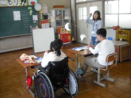 仲よし学級では,音楽の時間は交流学習をしていますが,学級でも学習する時もあります。今日は,「つばさをください」を歌っています。竹ひごにつけた白い鳥を,曲の感じに合わせて飛ばせながら歌っています。2人ですが,学級の名前の通り,仲良く頑張っています。