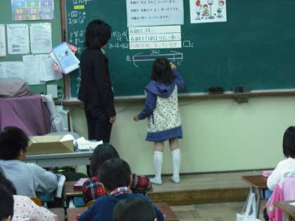 2年生では,「算数的活動を通して,自分なりに考えを持ち,表現する子」をテーマに研究を進めています。今日は「ちがいをみて」の学習で,違いに着目して,2本のテープ図に表わし問題を解く学習です。この学習は,これからの算数で,線分図に表して問題を解くという学習につながっていきます。