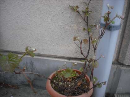 ブドウの木が新芽を出しています。これは,卒業した子どもが給食で出たブドウの種を植えたものです。今年もしっかりと芽を出しました。まだまだ実はなりませんが,こんなことも,子どもたちにとっては自然に親しむことにつながっています。
