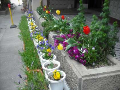 待鳳小学校は春一色。たくさんの花が咲いています。子どもたちの心をなごましてくれています。