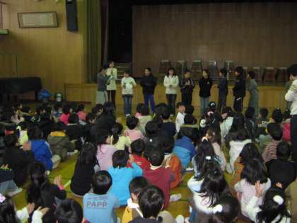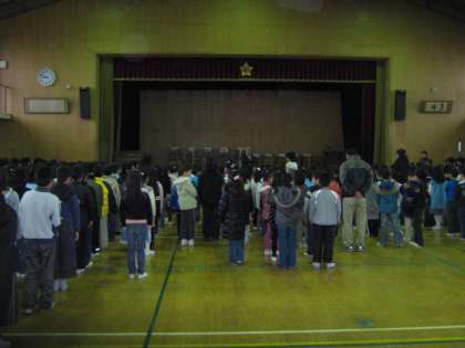 13日間の冬休みを終え,今日から授業再開です。朝会では,学校長より「寒さの中でも春に向けてつぼみを膨らませている草花に目を向けてみよう。君たちの心の中にある《希望》というつぼみも膨らませていける平成22年にしよう。」という話がありました。そのあと,4年生から盲導犬の募金の呼びかけと,児童会から12月の人権標語の表彰がありました。