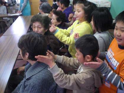 今日のすこやか学級に2年生が参加させていただきました。肩たたきをして歌を歌いました。肩たたきは練習してきたみたいで,とても上手でした。歌も元気よく歌うことができました。ありがとうございました。