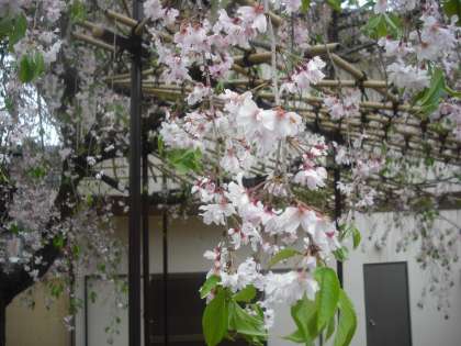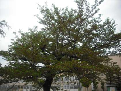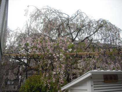 おはようございます。4月20日,午前7時20分の桜の様子です。ソメイヨシノはすっかり葉桜になりました。枝垂れ桜も,ご覧のように終りに近づいてきました。