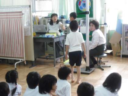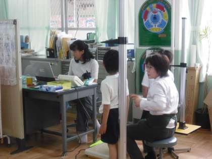 小学校に入学して,はじめての身体計測です。身長・体重・座高を測ります。6年間でどれくらい大きくなるのかな?楽しみだね。