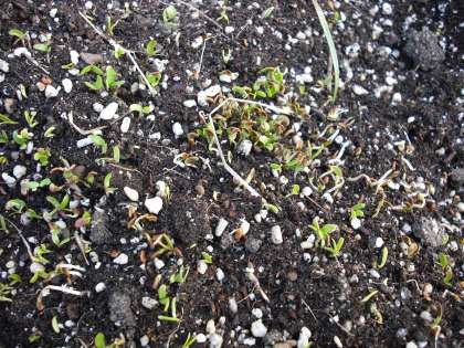 レンゲの種がどんどん発芽しています。春が楽しみになってきます。小さな小さな芽です。中庭の花壇に植えていますので,踏まないように注意してね。