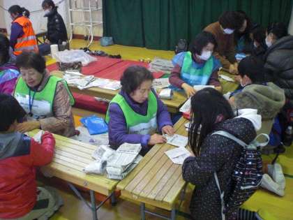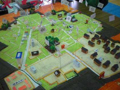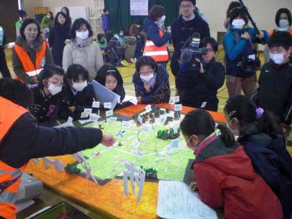 全体説明の後,子どもたちは各ブースに行って学習を始めました。待鳳学区防災マップを見たり,非常時用お茶碗を作ったりしています。