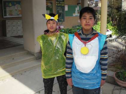 保健委員会では,各教室の換気を促すために,6年生が写真のようなコスチュームに身を包み,各教室を回って注意喚起しています。ガンバレ6年生!ガンバレ保健委員!