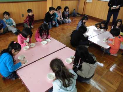 今週は,給食週間なので豆つかみ大会がありました。おはしを上手に使ってころころ転がる豆をうまくつかんでいました。クラスの代表として10人が豆つかみ大会に参加しました。