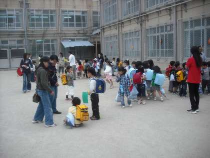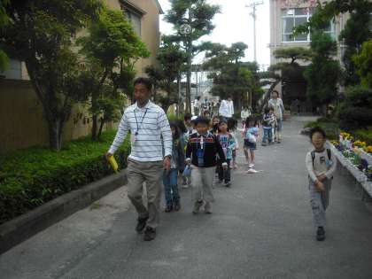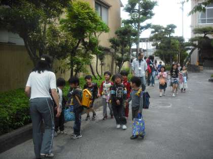 入学してから2週間がたちました。みんな集合も早くなり,ルールを守って下校しています。しばらくすると,先生や保護者の方の付き添いがなくなります。友だち同士で帰る時の練習をしっかりしています。