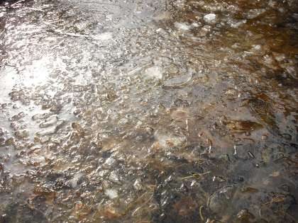 12時現在の気温は2.9度。観察池やプールの氷がとけていません。特に日陰だと夕方まで残りそうですね。また,明日の朝も凍りそうです。