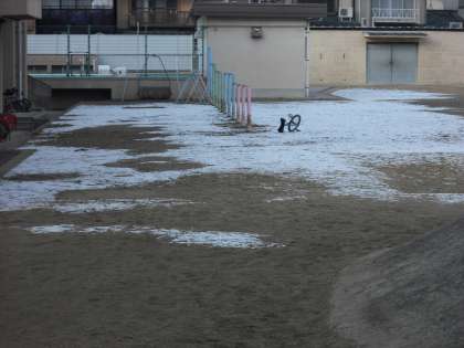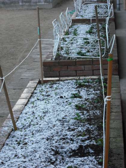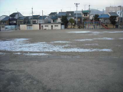 明け方,雪がちらつきましたが,そのため,今年初めて運動場や花壇がうっすらと白くなりました。陽がさすとすぐに溶けてしまいます。今,北陸地方や湖北では大雪が続いて困っています。京都では雪合戦や雪だるまができるくらいの雪は降るのでしょうか?