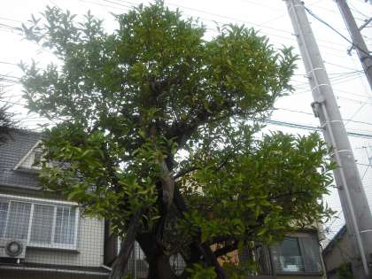 運動場西側の植込みにある「夏みかん」の木。本来ならアゲハが卵を産みつけるのですが,花がないためにアゲハが来ませんでした。そこで,ランタナを3株植えました。これからランタナがどんどん成長し,花を咲かせると,夏みかんの木にアゲハの卵がいっぱい見られるようになるでしょう。